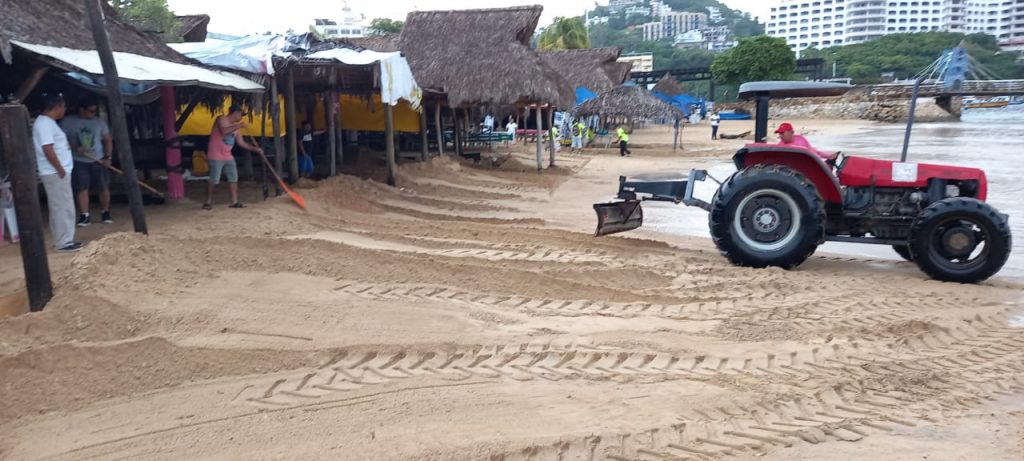 La gobernadora Evelyn Salgado Pineda instruyó atender de manera inmediata los daños, por lo que personal de barrido manual estuvo apoyando en diferentes tareas y el tractor se encargó de renivelar y oxigenar la arena de esta zona.