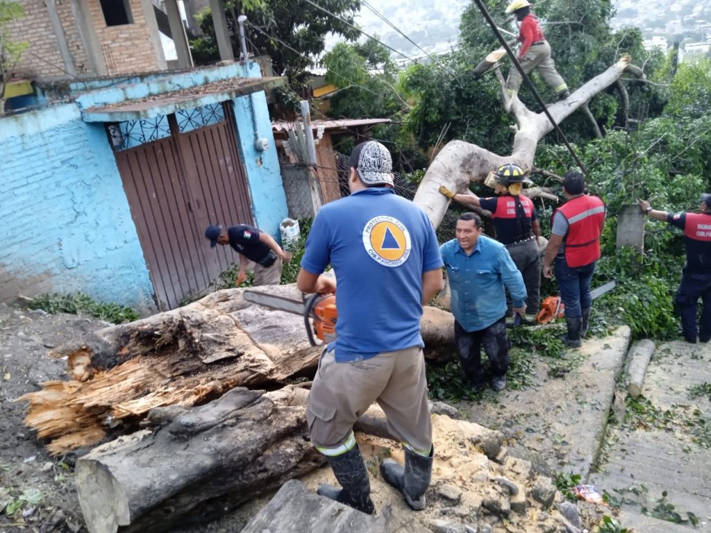 Encabezaron estos trabajos el coordinador de PC Municipal, Sergio del Moral Benítez, el subcoordinador Rafael Vázquez Mena, el comandante de Bomberos, Pedro Barrera Martínez y el delegado Guadalupe Jiménez Saucedo, quienes también atendieron la caída de un árbol e inundaciones de alcantarillas.