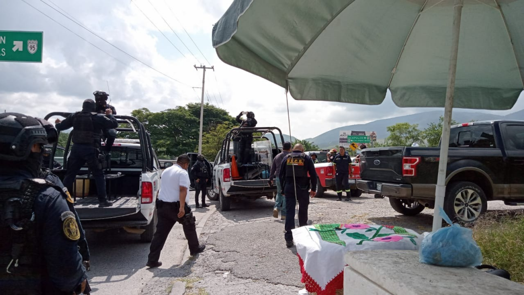 El grupo está integrado por elementos de la secretaría de Seguridad Pública, quienes dan acompañamiento a integrantes de las comisiones de Búsqueda de Personas y de Derechos Humanos, quienes se trasladaron al lugar de los hechos.