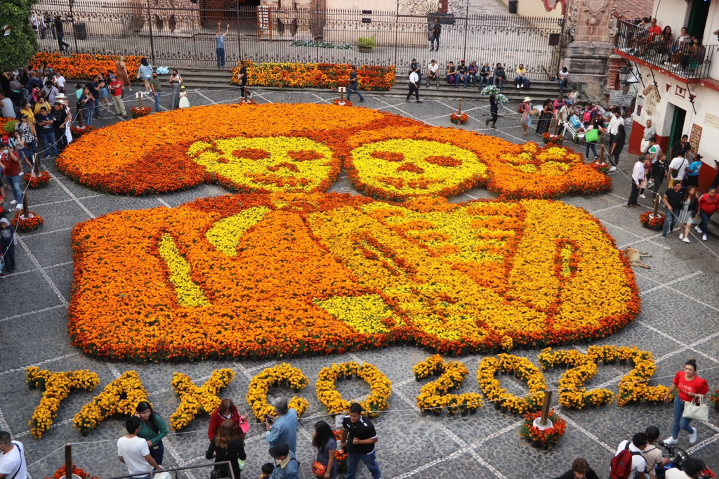 Como una tradición y un atractivo turístico de la ciudad platera de Taxco de Alarcón, al pie de la parroquia de Santa Prisca, en la Plaza Borda se colocaron más de 15 mil plantas de Cempasúchil para dar forma a la Monumental Catrina, como parte de la celebración a los fieles difuntos y todos los santos.