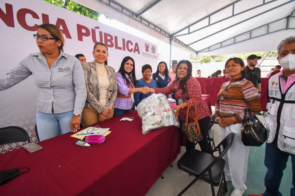 En esta audiencia pública, la alcaldesa entregó apoyos como cubetas de pintura para el Jardín de Niños Juan B. Salazar; material de aseo para la Escuela Primaria 30 de Abril; botiquín de primeros auxilios para la Escuela Secundaria Técnica No. 81, así como un apoyo económico para la danza de los tlacololeros.