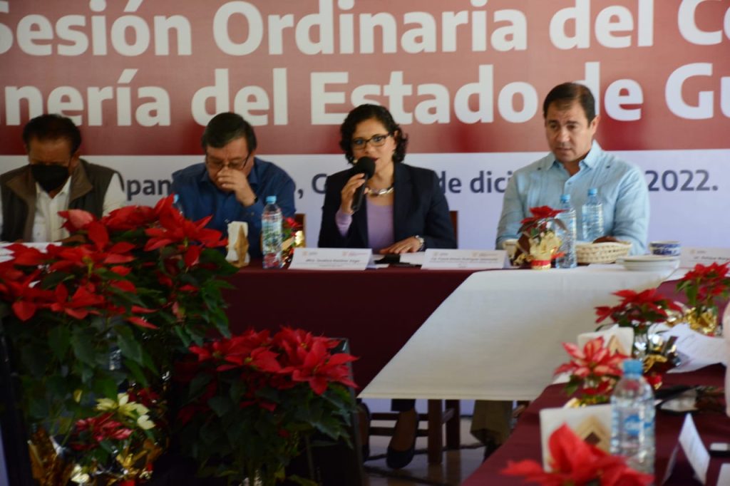 Zumpango del Río, Gro., 17 de diciembre del 2022.- La secretaria de Fomento y Desarrollo Económico, Teodora Ramírez Vega presidió la Vigésima Primera Sesión Ordinaria del Consejo de Minería del Estado de Guerrero, donde se presentó la agenda sectorial minera, que contempla el sector económico, ambiental y social.