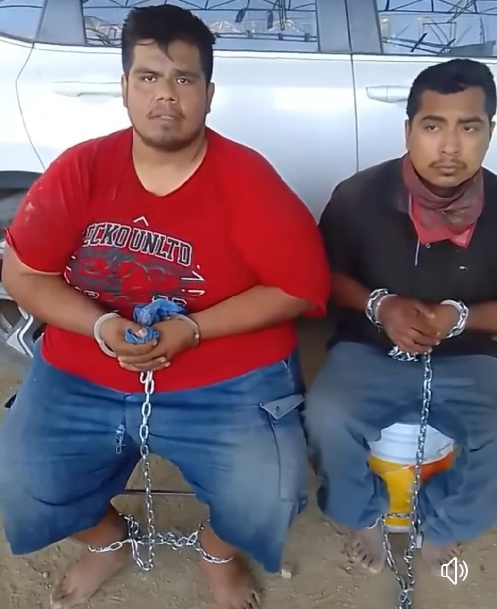 En la grabación, se ve a Fernando Moreno, descalzo y encadenado, decir “Estamos aquí, pagando las consecuencias de las publicaciones que se realizaban en contra de estas y de diferentes personas de la región de la Tierra Caliente, del Estado de #México, Michoacán y Guerrero”.