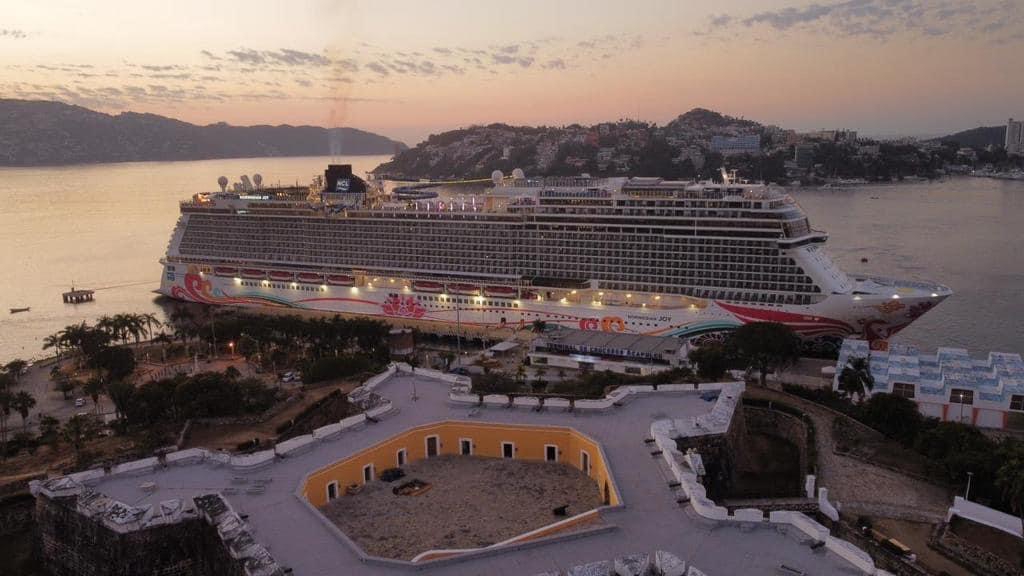 Acapulco, Gro., 12 de enero de 2023.- Proveniente de Puerto Vallarta, Jalisco, ancló esta mañana el Crucero Norwegian Joy con 5 mil 108 personas a bordo, de los cuales 3, 425 pasajeros y mil 683 tripulantes.