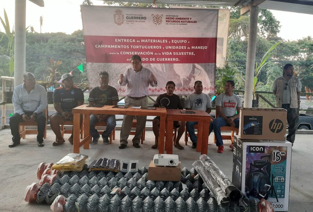 Al campamento tortuguero Mangle, Sol y Mar del municipio de Florencio Villarreal, se le entregó una cuatrimoto; a los de “Barrera de San Luis” del municipio de Tecpan y “Salvemos la Isla de Ixtapa” del municipio de José Azueta, se les entregó diversos materiales y equipo de campo.