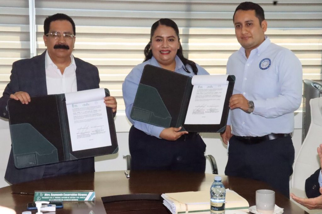 Juan Muñoz Caballero, Rector de la Universidad Hartman; David Jiménez Jaimes, Director del Tecnológico de Estudios Superiores de Chilpancingo S.C. y Mario Arturo Rivera Martínez, Rector de la Universidad Politécnica del Estado de Guerrero, quienes resaltaron la buena voluntad y beneficios que trae consigo esta alianza entre las universidades y el TSJ.
