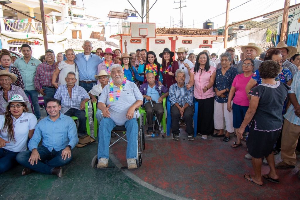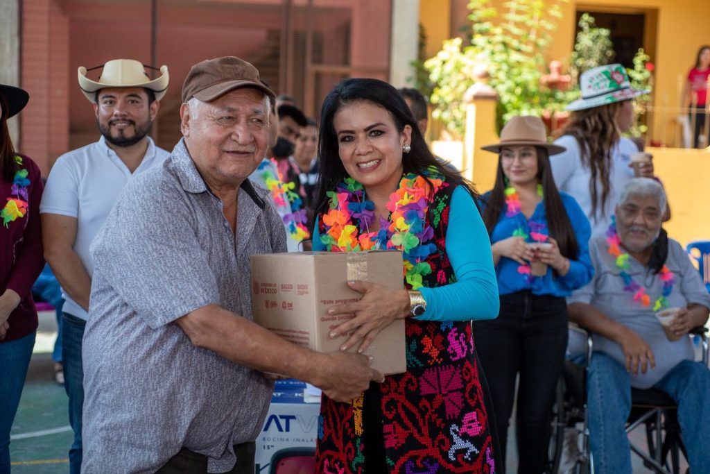 Ahí, Hernández Martínez entregó apoyos para la feria tradicional de la comunidad, focos y fotoceldas para mejorar el alumbrado público y anunció el inicio de la segunda etapa de la obra de agua potable.