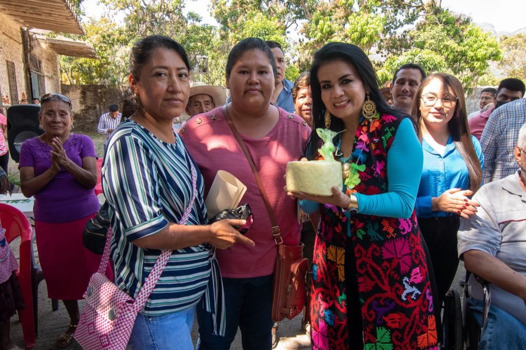 La alcaldesa, acompañada por integrantes del cabildo plural y funcionarios municipales, visitaron como primer punto la localidad de Cajelitos, donde entregó apoyos como cubetas de pintura para el jardín de niños “Guadalupe Aguayo de Ojeda”, entre otros.