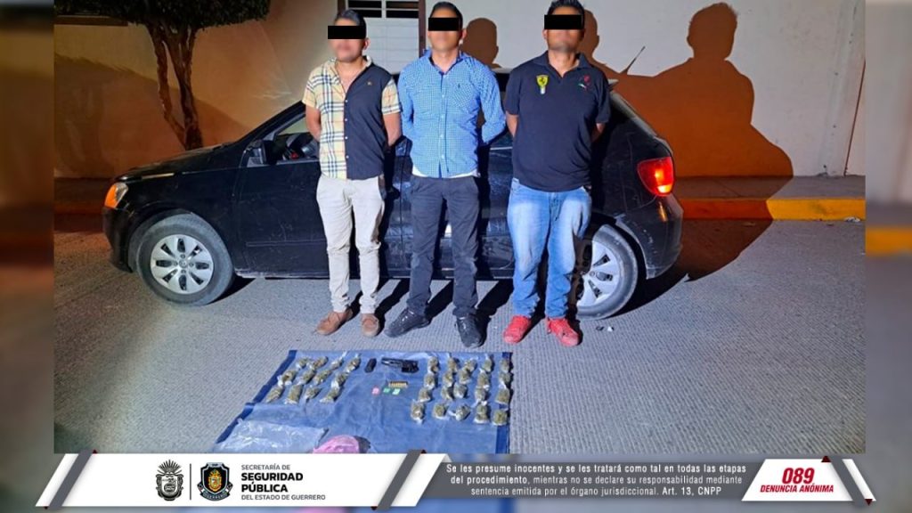 Chilpancingo, Guerrero, 16 de febrero de 2023.- En respuesta a una denuncia al número de emergencias 9-1-1, personal de la Policía Estatal logró la detención de tres personas en posesión de un arma de fuego, probable droga y un vehículo en el municipio de Chilpancingo.