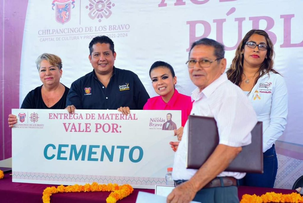 Al hacer entrega de una tonelada de cemento para los pisos de la escuela telesecundaria “Sor Juana Inés de la Cruz” y una tonelada de cemento para las rodadas de la calle Amatista en la colonia Las Joyas, la primer edil dijo que su gobierno sabrá cumplir con las solicitudes y compromisos adquiridos con el pueblo de Chilpancingo, “iniciamos el gobierno con un diagnóstico para saber enfrentar los adeudos heredados y cumplirle a la ciudadanía que más lo requieren, como parte de la justicia social”.