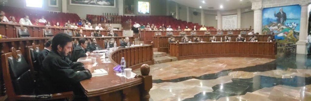 Chilpancingo, Gro., febrero 18 de 2023.- El titular del Poder Judicial Raymundo Casarrubias Vázquez, encabezó la sesión del Pleno del Tribunal Superior de Justicia (TSJ), en la que se rindió honor al magistrado Rafael Fernando Sadot Ávila Polanco, por sus 46 años de trayectoria al servicio del Poder Judicial de Guerrero, 30 de ellos como juzgador, y a quien por causas de salud, se le invistió con la figura de “magistrado en retiro”.