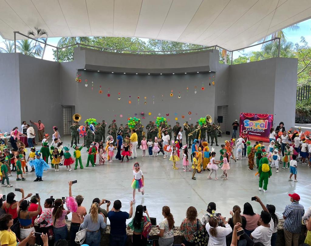 Al llegar al auditorio la banda de guerra de la IX Región Militar puso a bailar a todos los asistentes al tocar “La Iguana”, lo que animó a todos los niños y niñas.