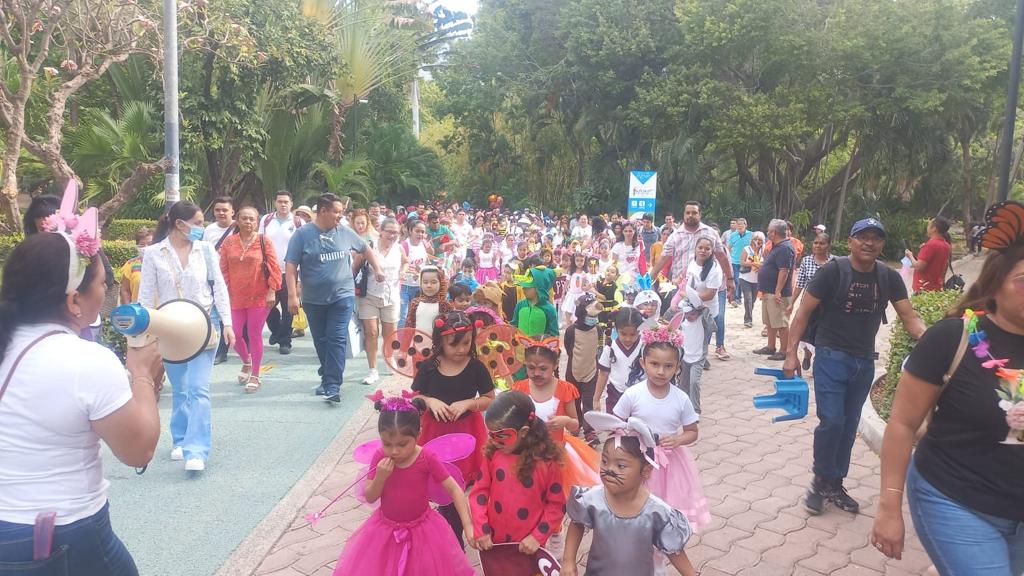 Las y los pequeños acompañados de sus padres y maestros desfilaron con gran entusiasmo, algunos disfrazados de flores, mariposas, tigres, leones, jaguares, rosas, entre otras especies de flora y fauna con motivo de la primavera.