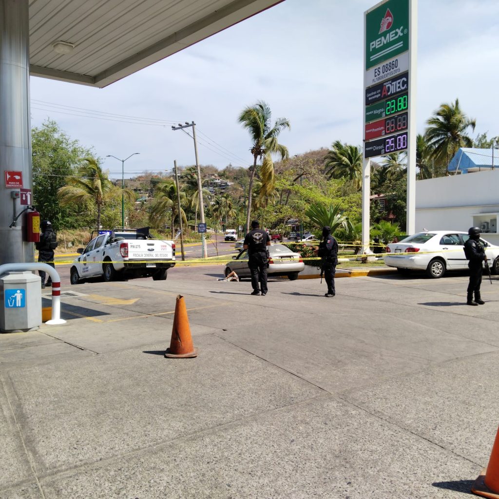 Zihuatanejo de Azueta, Gro., 09 de abril del año 2023.-En los patios de la gasolinera las Salinas, fue ejecutado un hombre por disparos de arma de fuego, en la colonia la Noria del Puerto de Zihuatanejo