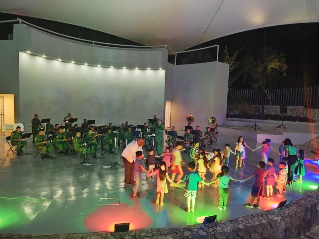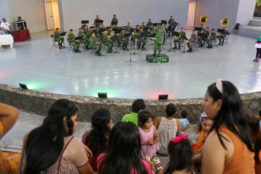 Acapulco, Gro., 16 de abril de 2023.- Arrancan los festejos alusivos al Día de la Niña y el Niño en el Parque Papagayo, con el concierto didáctico “La Magia de la Música a través de los Soldados”, dirigido por la banda de música de la IX Región Militar.