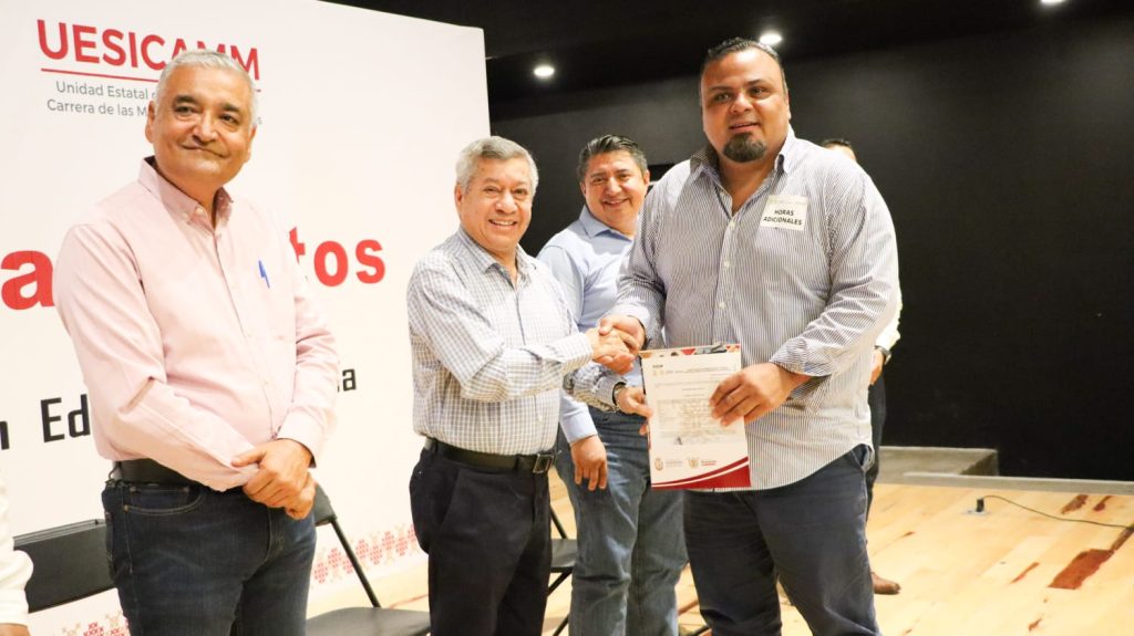La entrega se realizó de forma simbólica en el auditorio del CREA con la presencia del subsecretario de Educación Básica, Ricardo Castillo Peña; la secretaria técnica, Luisa Ayala Mondragón; el represente de la sección 14 del SNTE, Jesús Dircio Robledo; el director de Personal, Julio Alejandro Lucas Secundino, y la titular de la UESICAMM, Lucila Rangel Santos.