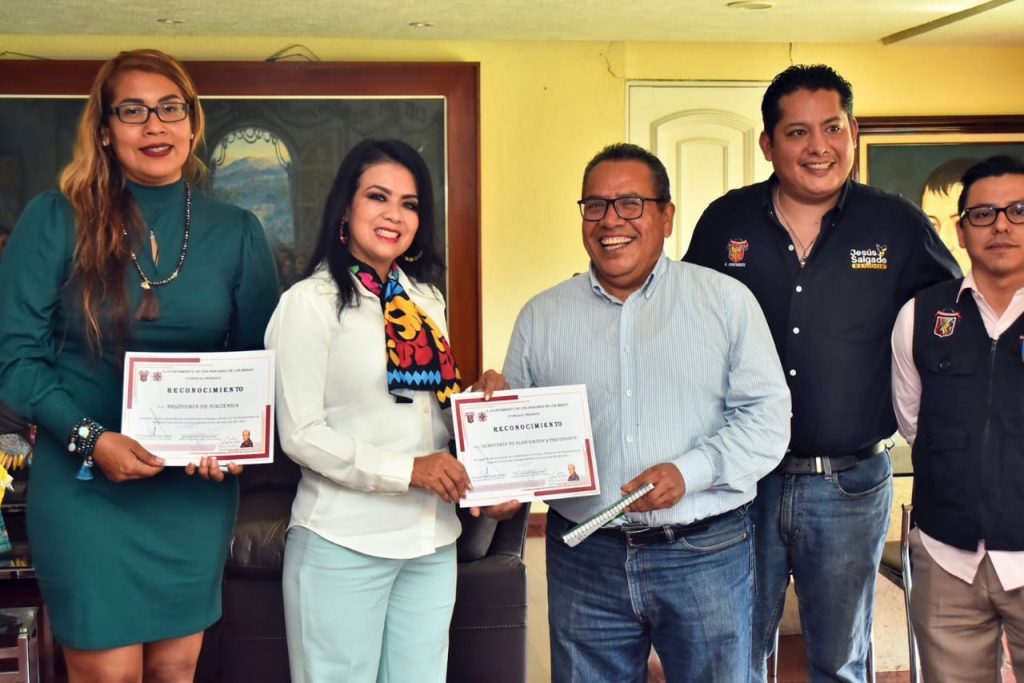 La alcaldesa entregó reconocimientos a los titulares de áreas y unidades administración por cumplir con la obligación en presentar su declaración patrimonial en tiempo y forma, correspondiente al 2022, esto como parte de los trabajos de transparencia y rendición de cuentas.