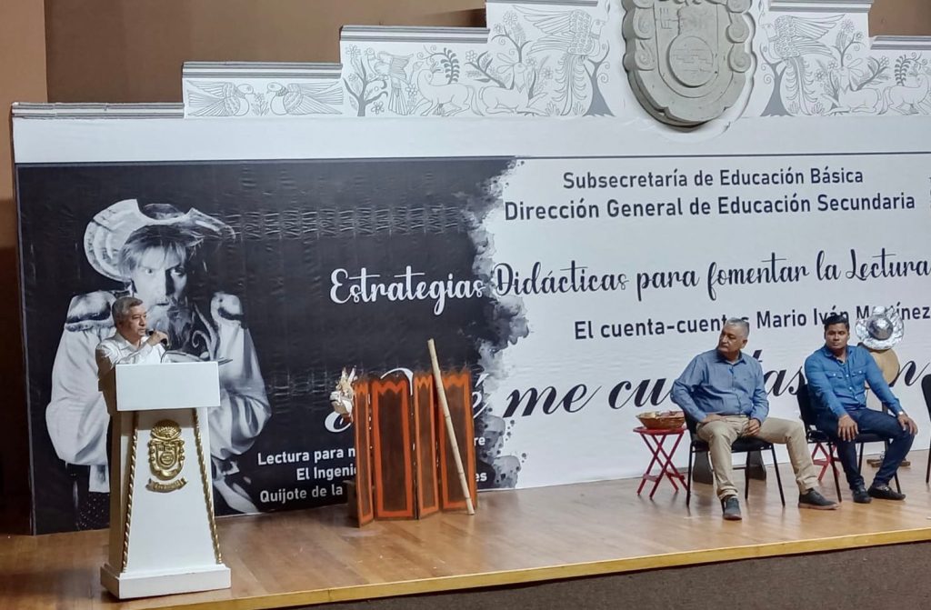 Durante la puesta en marcha de la estrategia que se realizó en el auditorio José Joaquín de Herrera, del Palacio de Gobierno se presentó el Cuenta Cuentos, con Mario Iván Martínez, reconocido promotor de lectura y de acercamiento del público infantil a la música y la cultura a través de sus narraciones.