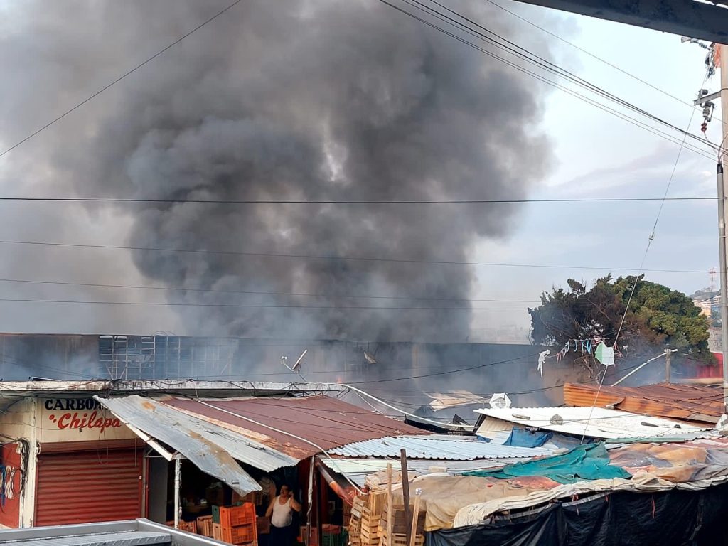 El fuego inició en el estacionamiento y rápidamente se extendió hacia la nave central consumiendo un gran números de puestos, donde se venden diversas mercancías.