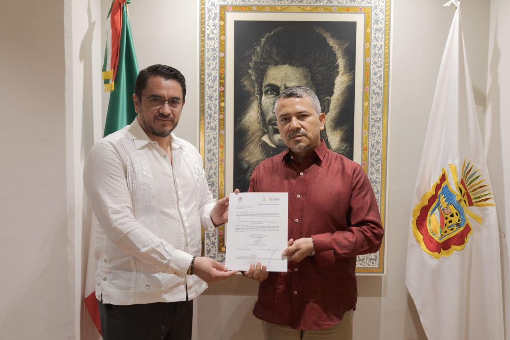 Con la representación de la gobernadora del Estado Evelyn Salgado Pineda, el secretario general de gobierno, Ludwig Marcial Reynoso Núñez, realizó la entrega de nombramiento y toma de protesta al Dr. Roberto Estrada Amaya, como Director General del Instituto Estatal de Oftalmología de la Secretaría de Salud, exhortándolo a conducirse bajo los principios de transformación y bienestar en favor de las y los guerrerenses.