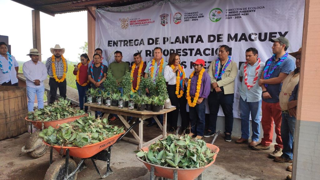 Axaxacualco, Mpio. De Eduardo Neri, 28 de julio de 2023.- Un total de dos mil quinientas plantas de maguey fueron entregadas a productores de mezcal de las comunidades de Tlanipatla y Axaxacualco para fomentar la producción sustentable y amigable con el medio ambiente, en una mezcla de recursos entre el gobierno del estado y municipio.