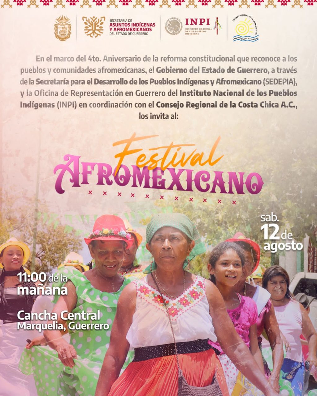 La Costa Chica se viste de fiesta para conmemorar su 4to Aniversario de ser reconocidos como pueblos y comunidades afromexicanas.