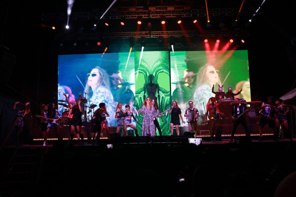 Chilpancingo, Gro., 14 de agosto de 2023.- La cantante mexicana Belinda, fue la encargada de abrir el programa de conciertos denominado “DO, RE, MI, FA, SOL”, impulsado por la gobernadora de Guerrero, Evelyn Salgado Pineda.