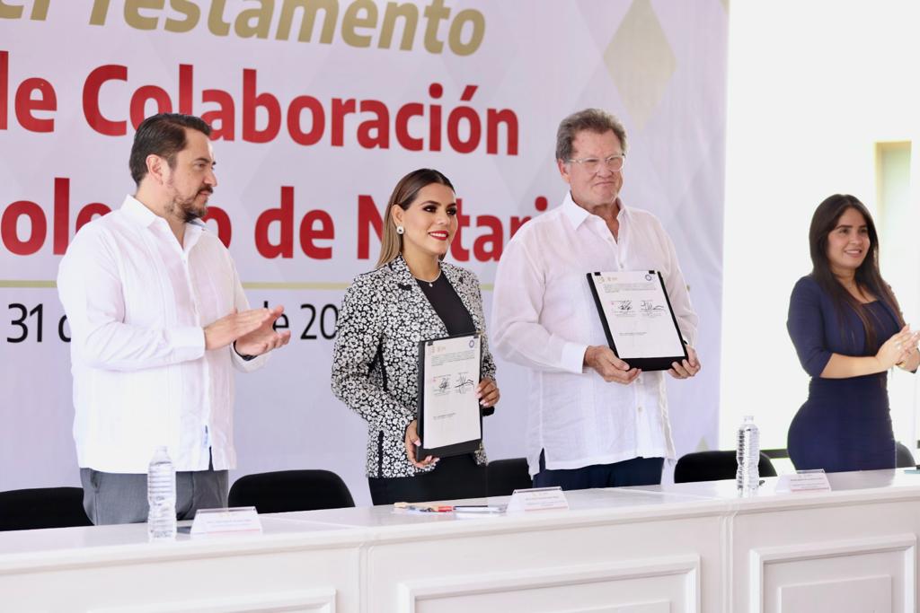 Chilpancingo Gro., 1 de septiembre. – La gobernadora Evelyn Salgado firmó un convenio de colaboración con el Colegio de Notarios del estado para dar inicio a la jornada de “Septiembre Mes del Testamento”, con el beneficio social de reducir a una cuota mínima de 500 pesos el costo de este trámite para las y los adultos mayores, con el objetivo de tener certidumbre y seguridad jurídica en la herencia de sus bienes y mantener la unión familiar.