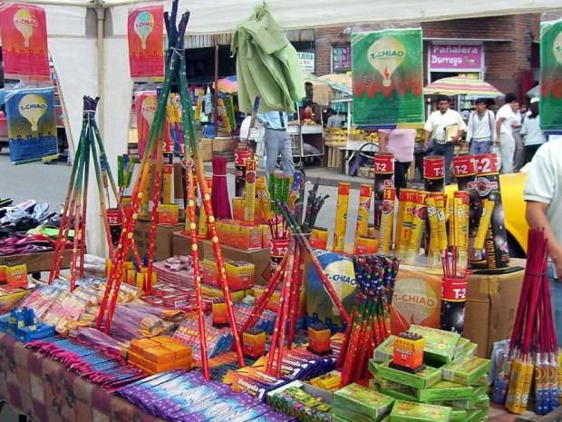 Los vendedores de pirotecnia se instalan en carretillas en calles de mucho tránsito de personas, y en caso de que se presente un operativo, tiene quien les avise para poder retirarse antes de que los policías lleguen al sitio.