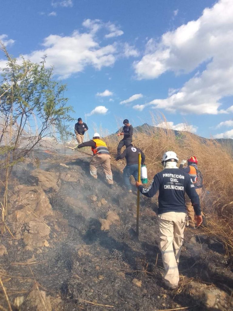 Elementos de la Coordinación General Coordinación de Protección Civil Chilpancingo sofocaron un incendio de pastizal cerca de la autopista entre el Hospital Comunitario y la Unifad Deportiva en la comunidad del Ocotito.