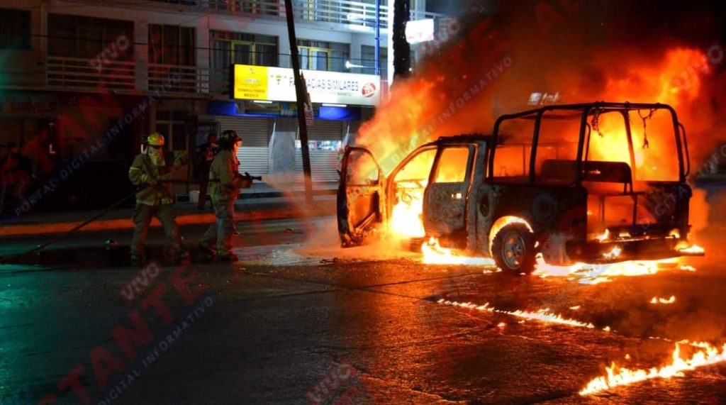 Chilpancingo.- Estudiantes de la normal de Ayotzinapa quemaron una patrulla de la Policía Estatal, después que dos de sus compañeros fueron atacados por agentes en un puesto de revisión de carro con reporte de robo.