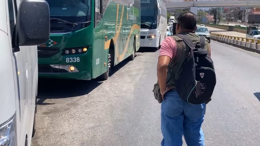 camiones en los que se trasladan normalistas de Ayotzinapa