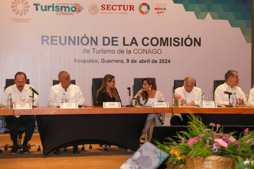 Acapulco, Gro., 10 de abril de 2024.- En el marco del primer día de actividades del Tianguis Turístico Acapulco 2024, la gobernadora Evelyn Salgado Pineda participó en la sesión de la Comisión de Turismo de la Conferencia Nacional de Gobernadores (Conago), en la que su homóloga de Yucatán, Mara Lezama, fue electa como coordinadora de dicha comisión.