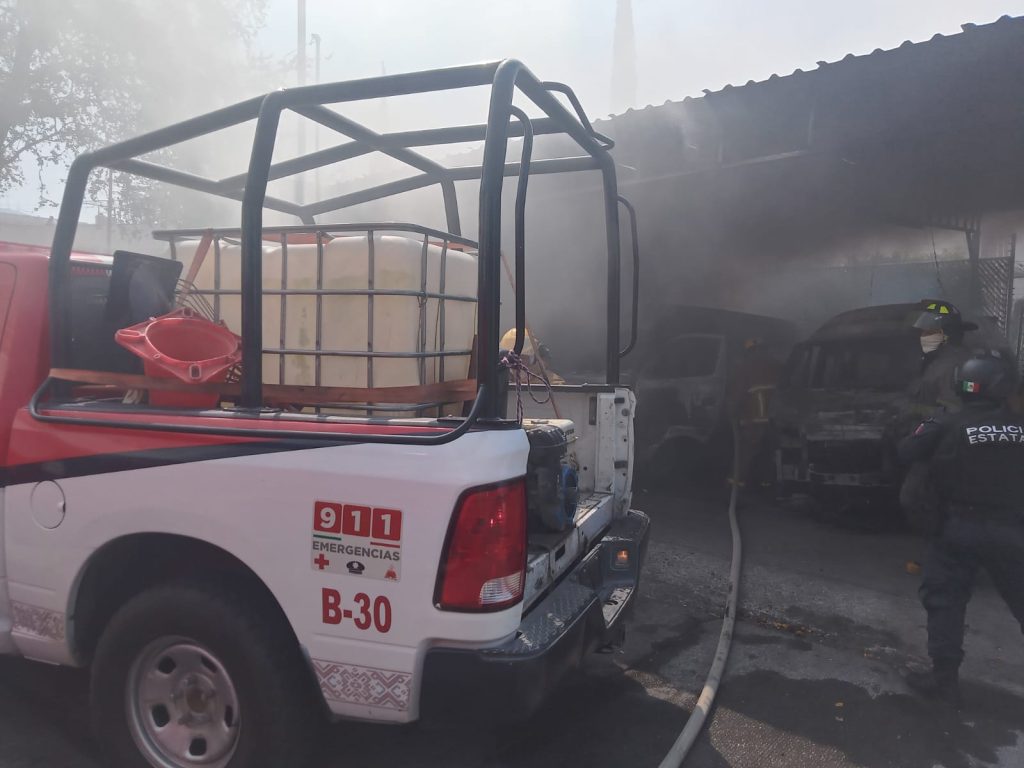 SSyPCM coadyuva en atención a reporte de incendio de unidades del servicio público en colonia Morelos