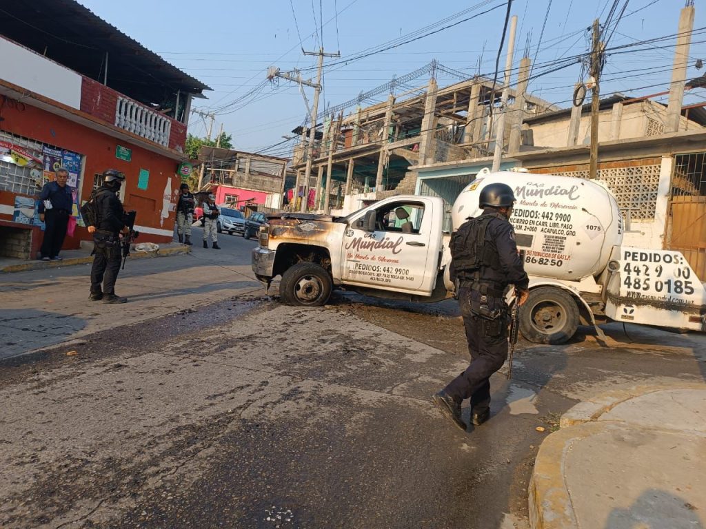 En el lugar de los hechos, el personal policial de la Secretaría de Seguridad Pública de Guerrero localizó una pipa transportadora de gas LP incendiada. El personal de Bomberos sofocó el fuego.