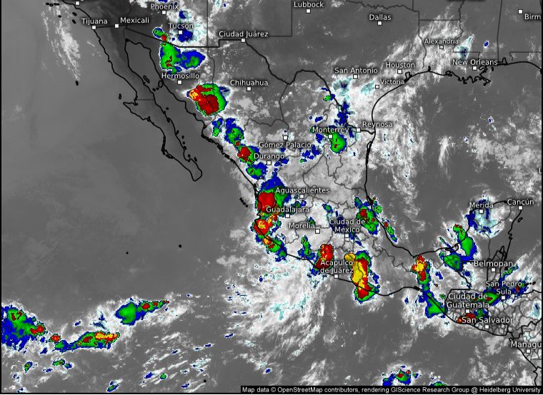 De acuerdo con el pronóstico del Servicio Meteorológico Nacional, del jueves 11 al lunes 15 de julio, se prevé la ocurrencia de lluvias fuertes a puntuales intensas, con acumulados de 75 a 150 milímetros por metro cuadrado, acompañadas de descargas eléctricas, rachas de viento y posible caída de granizo en las partes altas del estado, las cuales se pueden manifestar, principalmente, durante las tardes y noches de los días en referencia.