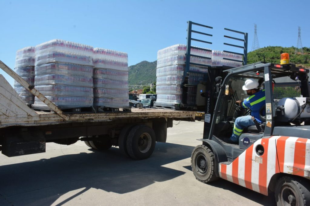 Acapulco, Gro., 24 de octubre de 2024.- El Gobierno del estado que encabeza Evelyn Salgado Pineda, a través de la Secretaría de Fomento y Desarrollo Económico recibió del Grupo Modelo México la donación de 43 mil 200 botellas de agua de 600 mililitros para las familias damnificadas por el huracán John.