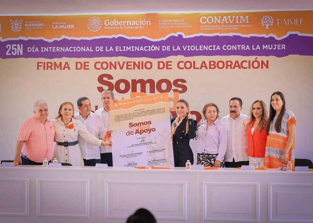 Con esta firma de colaboración, el estado de Guerrero se suma a la estrategia nacional de “Somos tu Red de Apoyo” convocada por la Comisión Nacional para Prevenir y Erradicar la Violencia contra las Mujeres (CONAVIM), para coordinar acciones y garantizar el acceso a las mujeres a una vida libre de violencia.