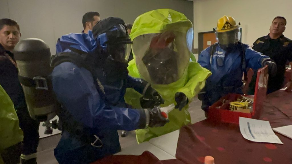 Chilpancingo, Gro., 28 de noviembre de 2024.- Para fortalecer sus conocimientos y capacidades de reacción en el manejo de emergencia generadas por sustancias peligrosas, el gobierno del estado a través de la Secretaría de Gestión Integral de Riesgos y Protección Civil, en coordinación con la empresa minera Los Filos, este miércoles impartieron una capacitación integral al personal operativo de la dependencia estatal.