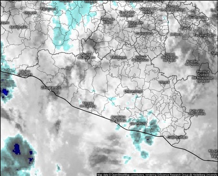 Estas condiciones climatológicas son favorecidas por una Corriente en Chorro Subtropical sobre Michoacán y Jalisco, misma que seguirá impulsando Aire Marítimo en los Niveles Medios sobre el estado de Guerrero; así como la Masa de Aire Frío del Frente Frío número 22.