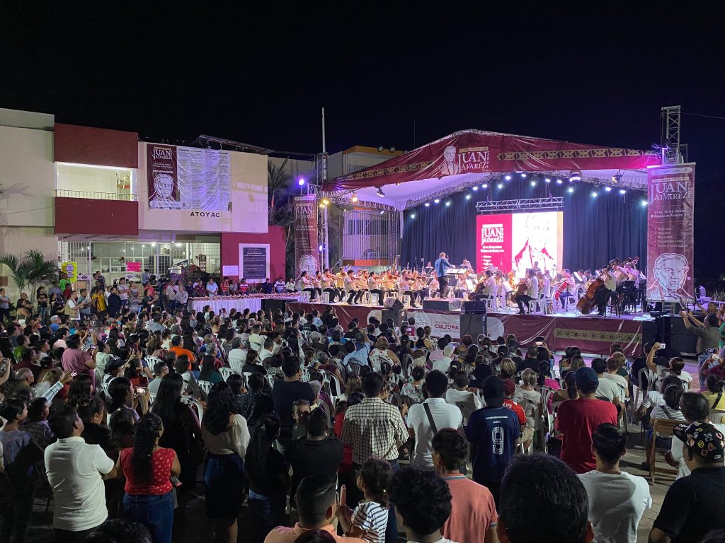 Con el apoyo de la Secretaría de Cultura Guerrero y en coordinación con el H. Ayuntamiento de Atoyac de Álvarez, la presentación se realizó en la Plaza Cívica Morelos donde se dieron cita las familias atoyaquenses quienes disfrutaron la música de Guerrero y los valses de Johann Strauss que hoy llegaron a la ciudad cafetalera en la región de la Costa Grande.