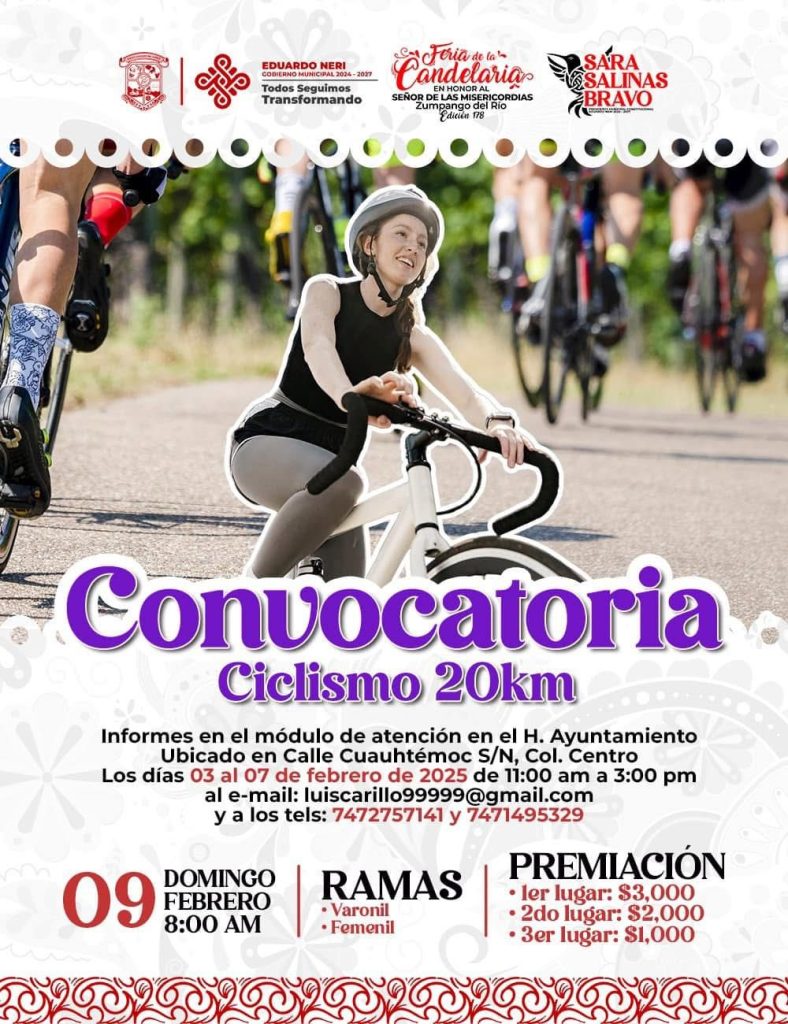 El Gobierno Municipal de Eduardo Neri, que preside la Q.B.P. Sara Salinas Bravo, a través de la Dirección del Deporte, en el marco de la 178 edición de la feria de la candelaria en honor al Sr. de las Misericordias 2025, abren las siguientes convocatorias