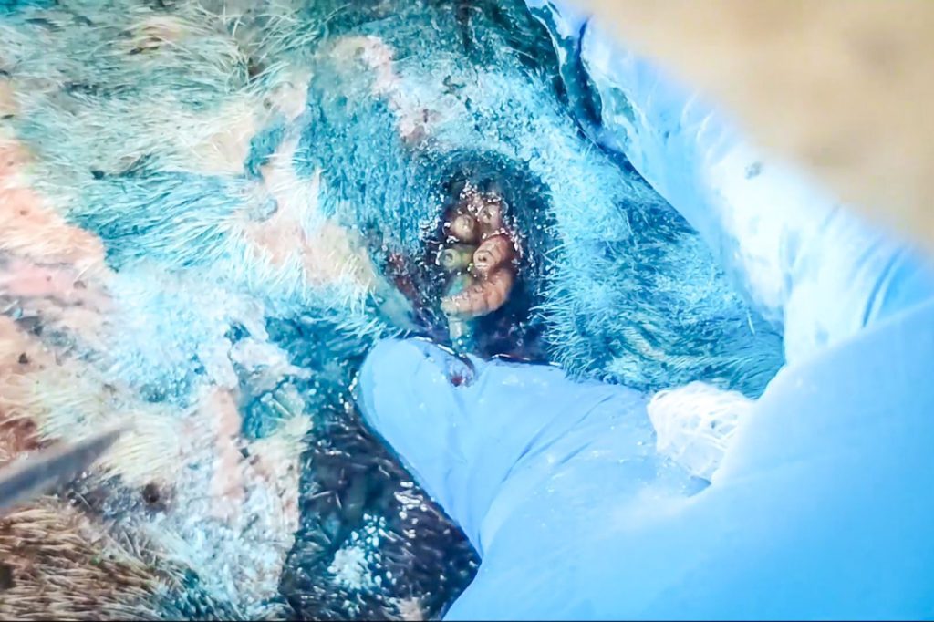 El gusano barrenador del ganado es una infestación provocada por las larvas de la mosca llamada “Cochliomyia hominivorax”, que se alimentan del tejido vivo de los mamíferos, y en raras ocasiones de las aves. Las moscas depositan sus huevos en heridas superficiales, y las larvas eclosionan en un periodo de 12 a 24 horas. Posteriormente, las larvas se alimentan del tejido durante 4 a 8 días, causando graves daños al animal.