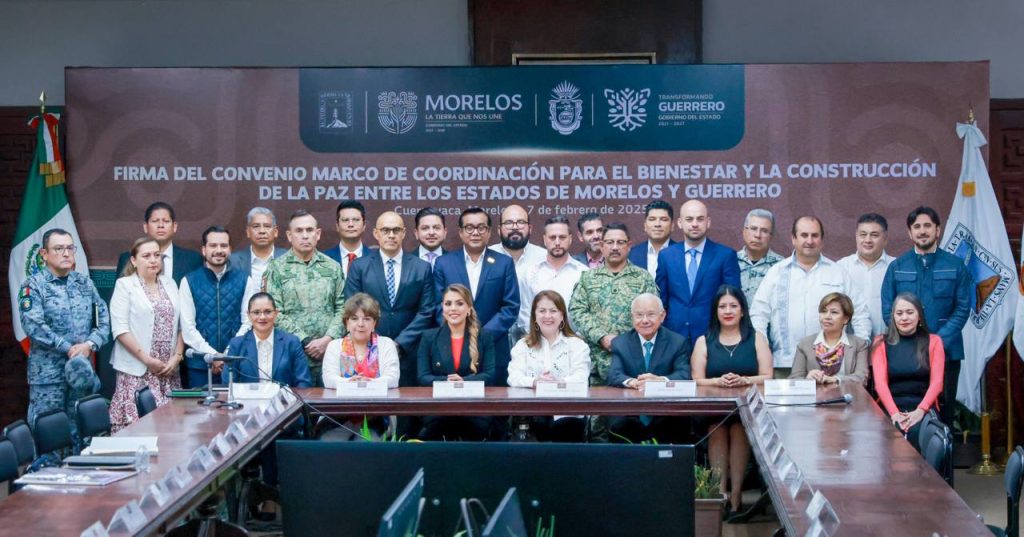 Cuernavaca, Mor., 08 de febrero de 2025. – La gobernadora de Guerrero, Evelyn Salgado Pineda, y su homóloga de Morelos, Margarita González Saravia, firmaron el Convenio de Coordinación para el Bienestar y la Construcción de la Paz, con el propósito de fortalecer acciones conjuntas en materia de seguridad, bienestar, economía y turismo, lo que permitirá el desarrollo, la actualización y la capacitación de programas operativos en el ámbito de sus respectivas competencias.