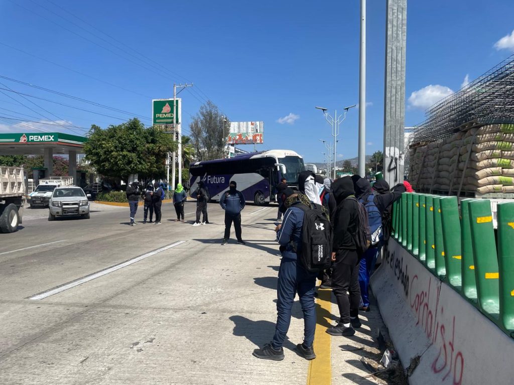La mañana del martes desde las 10:00 horas, un grupo de 150 estudiantes de la escuela normal que se ubica en el municipio de Tixtla, arribaron a la zona sur de Chilpancingo, a bordo de siete camionetas y dos autobuses.