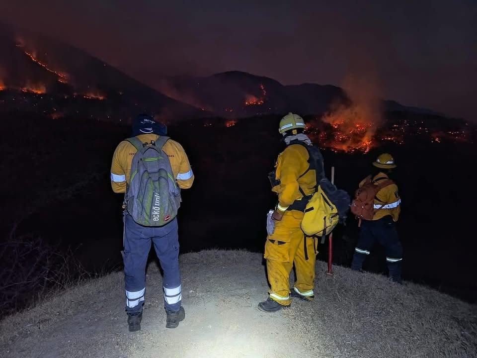 La noche de este domingo, brigadistas de las regiones Centro y Norte de la SGIRPCGRO y de la Secretaría de Medio Ambiente y Recursos Naturales del estado, realizan técnicas de lineas guardarrayas del lado de la comunidad del Naranjo, como medida preventiva para evitar que el fuego se acerque a las viviendas.
