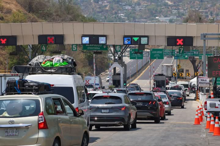 Acapulco, Gro, 29 de marzo del 2025.- Desde el mediodía de este viernes, los accesos al puerto de Acapulco y la Autopista del Sol registran una importante carga vehicular, visitantes nacionales arriban a este destino de playa para disfrutar de su fin de semana.
