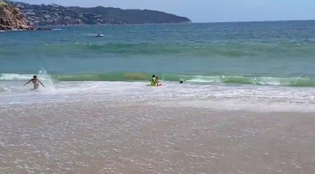 Acapulco, Gro., 31 de marzo de 2025.- En acto heroico, la tarde de este domingo, el guardavidas de la Promotora de Playas Acapulco, Erick Álvarez Cruz, rescató a dos jóvenes, de 22 y 24 años de edad, quienes se encontraban en peligro por el fuerte oleaje en playa El Morro.