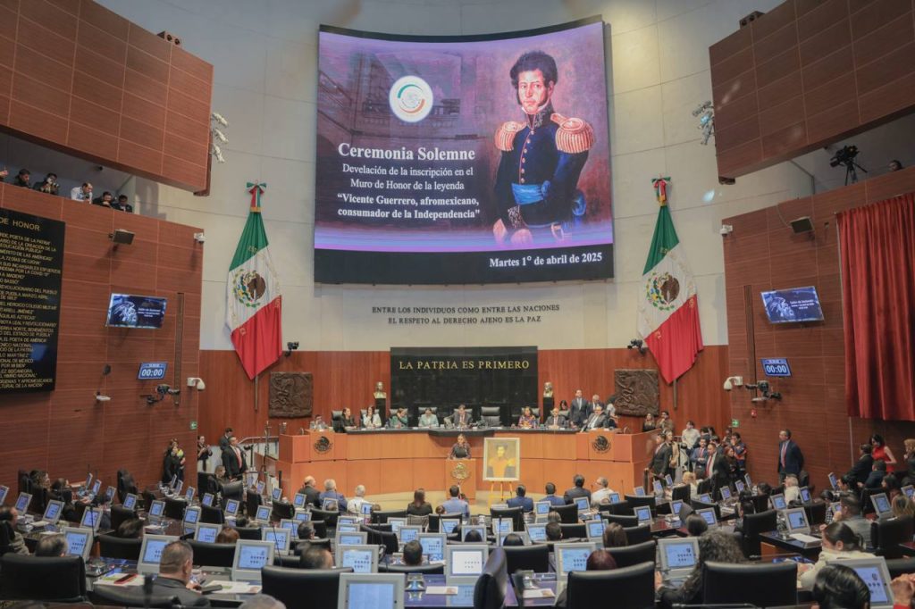 Ciudad de México. 02 de abril del 2025. – La gobernadora de Guerrero, Evelyn Salgado Pineda, asistió al Senado de la República para la develación de la leyenda con letras de oro: “Vicente Guerrero, afromexicano, consumador de la Independencia” en el Muro de Honor, donde se honró el legado del libertador guerrerense.