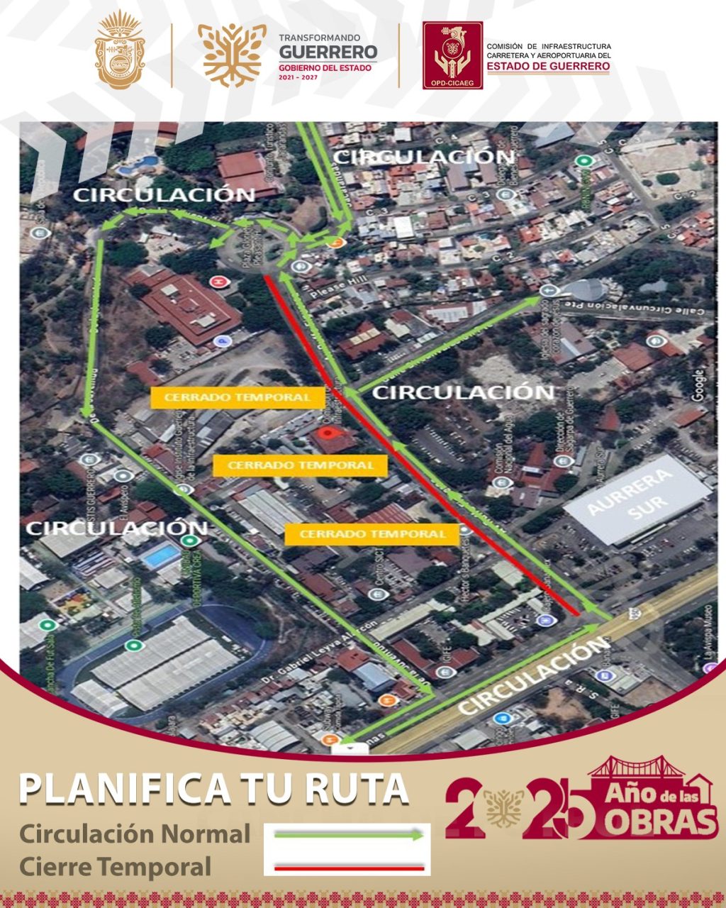 A partir de este jueves 03 de abril a las 4 pm, se cerrará la circulación vehicular en dirección ISSSTE – Aurrera Sur, carril derecho, en la capital del estado, debido a trabajos de mantenimiento.